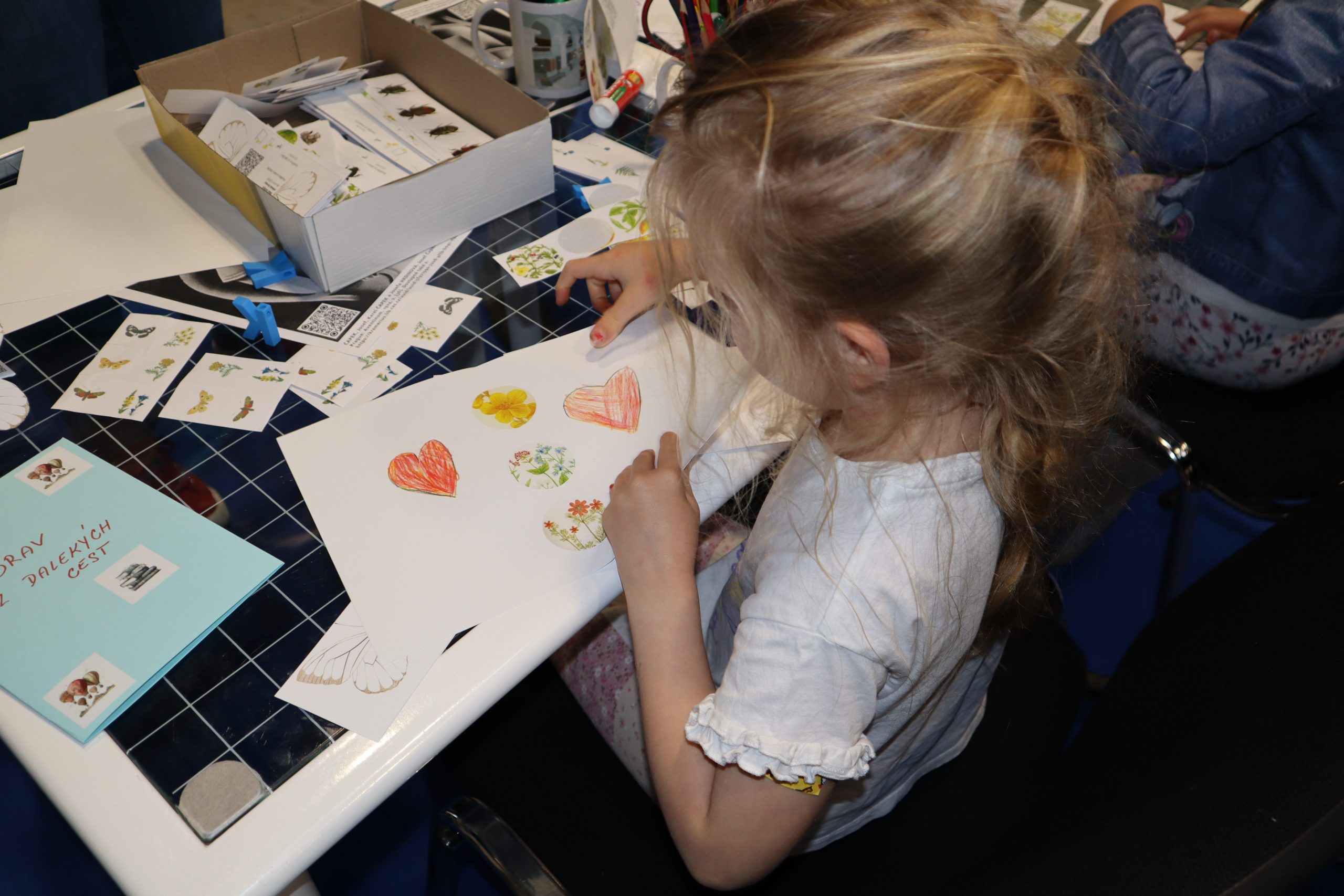 Tématem naší expozice byla Digitální knihovna (DK). Děti vybarvovaly omalovánky, skládaly záložky a nalepovaly samolepky – to vše s ilustracemi z DK. Pro starší děti a dospělé všech věkových kategorií jsme měli připravený úkol, za jehož splnění si každý mohl vybrat odměnu – propisku s logem nebo originální přívěsek. Na vylosovanou kartičku bylo potřeba napsat větu za použití dvou předepsaných slov, další podmínkou bylo, aby věta začínala na písmeno K. Na každé kartičce si také soutěžící mohli přečíst zajímavost o digitální knihovně. Soutěž měla obrovský úspěch a vyplněnými kartičkami, kterých na konci bylo více než tisíc, jsme si originálně vyzdobili stánek.